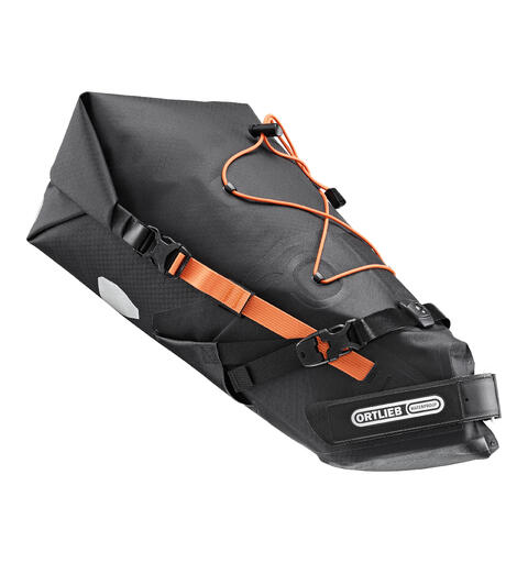 Lett sadelveske laget i PU-belagt nylonstoff med refleksgarn. Komprimerbar rullelukking, justerbart festesystem for seteskinner, refleks og feste for baklys. Tilgjengelig tilbehør: Saddle-Bag strap set for komfortsal (F96E) og Saddle-Bag Mounting Set for ekstra sykkel (E97).